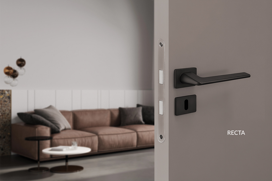 Utrzymane w eleganckiej palecie barw - satynowym odcieniu, głębokiej czerni oraz złocie szczotkowanym - klamki Recta doskonale komponują się z różnorodnymi stylami drzwi i wnętrz, wnosząc do nich spójność, harmonię i subtelny akcent luksusu.