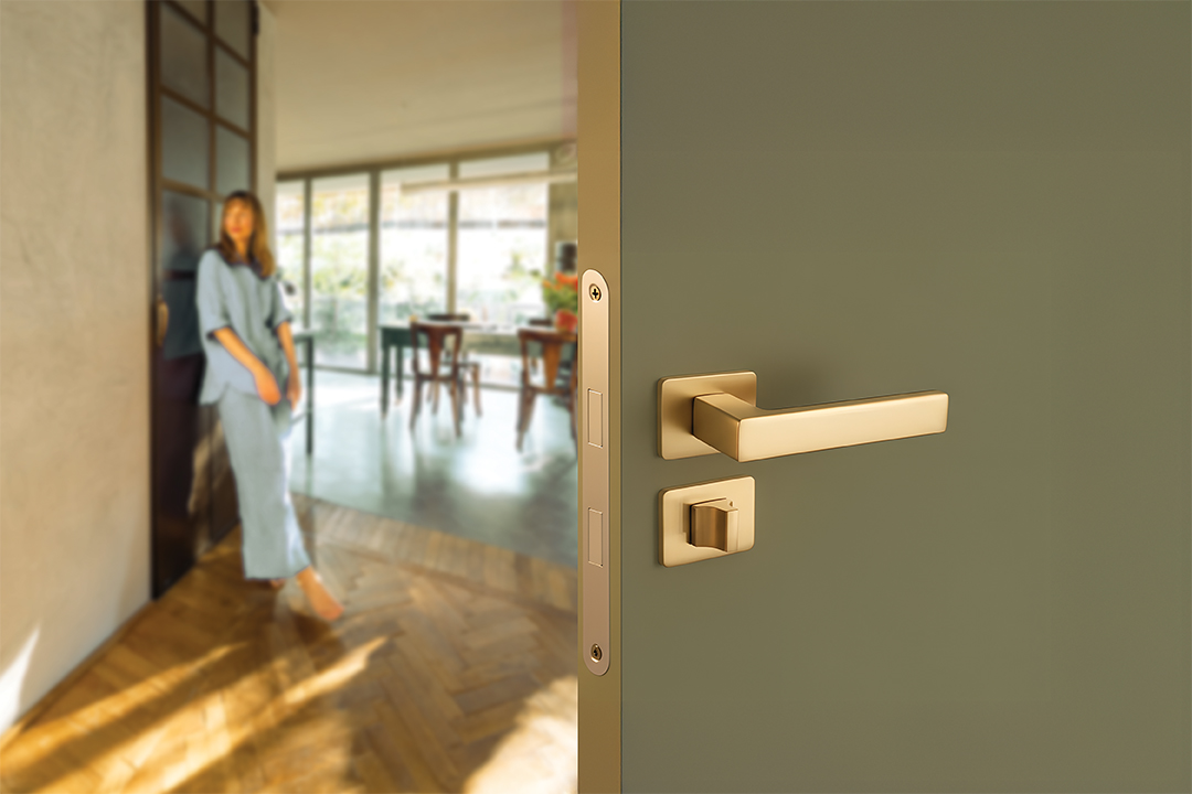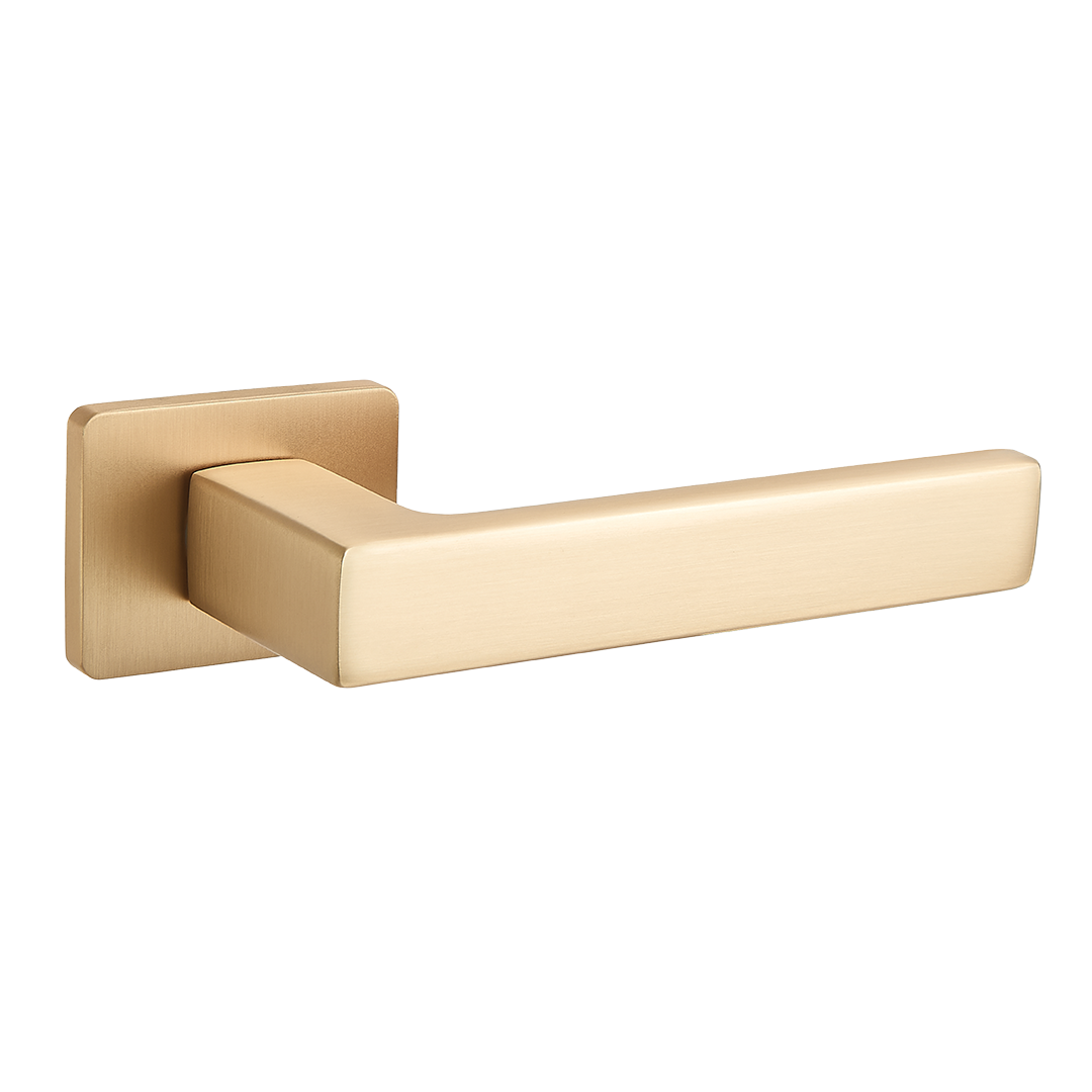 Klamka Kvadrato II w kolorze złota szczotkowanego to połączenie nowoczesnej formy, precyzyjnego wykonania i ponadczasowego stylu. Jej geometryczna sylwetka oraz prostokątny szyld tworzą elegancki i wyważony design, który doskonale komponuje się z drzwiami w różnych stylach - od nowoczesnych po klasyczne.