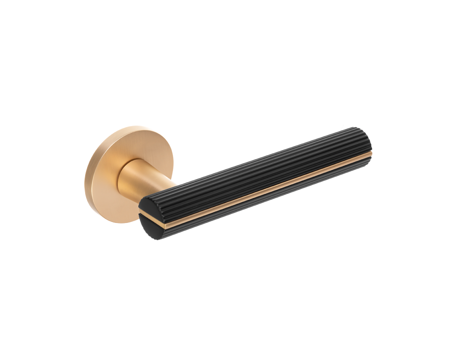 Rękojeść o okrągłym, miękkim kształcie otulona została ryflowaniem, przypominającym koncentryczne kręgi na tafli wody. Ten subtelny, naturalny motyw wnosi do formy rytmiczność i wizualną lekkość, tworząc harmonijną całość inspirowaną cyklicznością natury. Dzięki temu klamka staje się nie tylko użytkowym elementem drzwi, ale też estetycznym detalem, który wnosi do wnętrza spokój i elegancję.