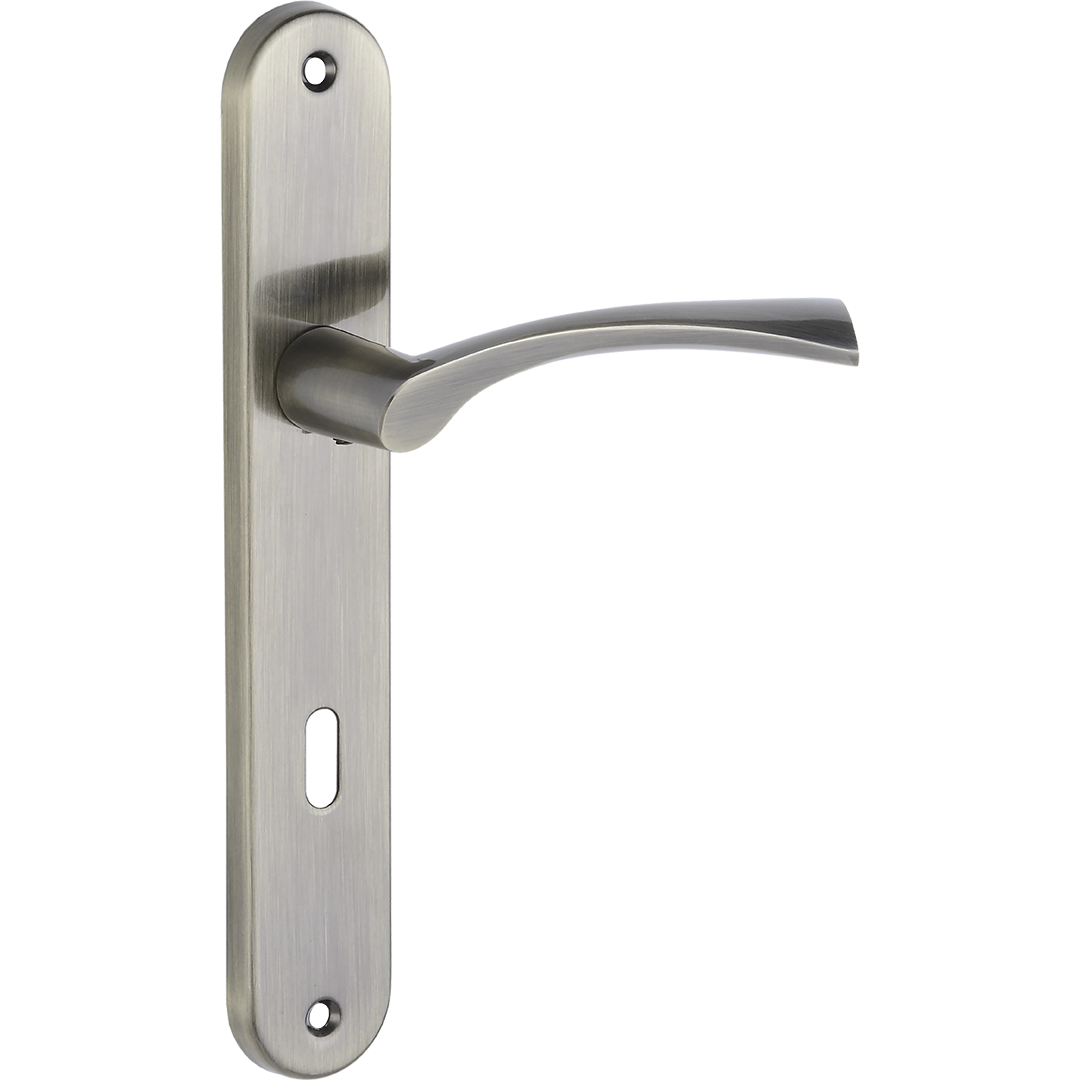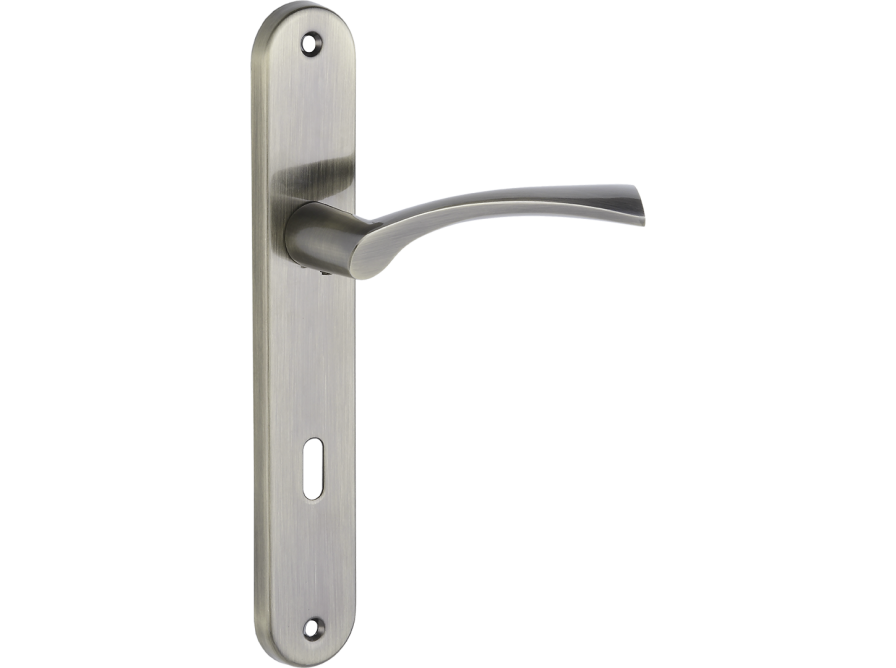 Klamka Noa na szyldzie długim na klucz - elegancja i funkcjonalność w wykończeniu patyna