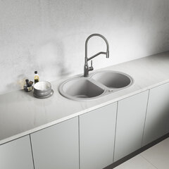 Zlewozmywak granitowy dwukomorowy marki Kuchinox powstaje z gęstego kompozytu, w którym naturalne kruszywo kwarcowe połączono z żywicą. Znając naszą doskonałą jakość udzielamy 10 lat gwarancji na korpus produktu. Wykorzystany materiał jest odporny na uderzenia, zarysowania sztućcami oraz uderzenia mechaniczne. Zlewy granitowe dobrze znoszą wysokie temperatury, na dno komory można odstawiać naczynia rozgrzane do 250°C bez ryzyka uszkodzenia powierzchni. Gładka, nieporowata struktura kompozytu zapobiega wnikaniu zabrudzeń organicznych, co chroni je przed przebarwieniami.